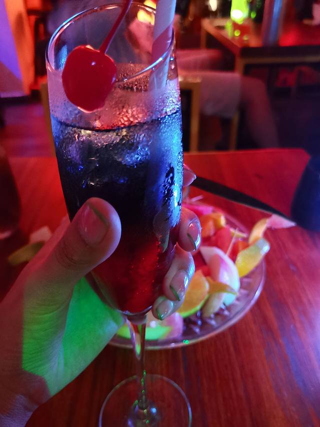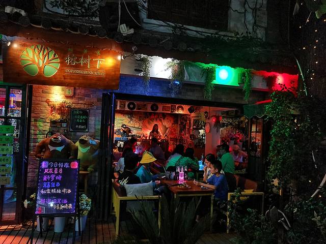 点了酒吧的特调“榕树下”,爱人点了长岛冰茶,还配了果盘和小吃。两个人坐着聊聊人生,听听歌,感受夜景,即使不说话也很温暖。直到11:30,古镇不允许弹唱了,放了点轻音乐,我们也就打算回客栈休息。想找家烧烤店继续喝点,没看到合适的,也就罢了。