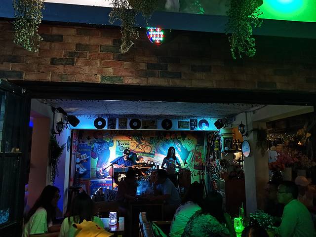 去了热闹的酒吧街,喜欢的书店门前拍了照片,逛了一段就折回来以前白天去过的一家咖啡店,晚上是酒吧,进去喝点,聊聊天。刚好是去年来驻唱的歌手在唱歌,特开心,喜欢那种一切依旧的感觉。