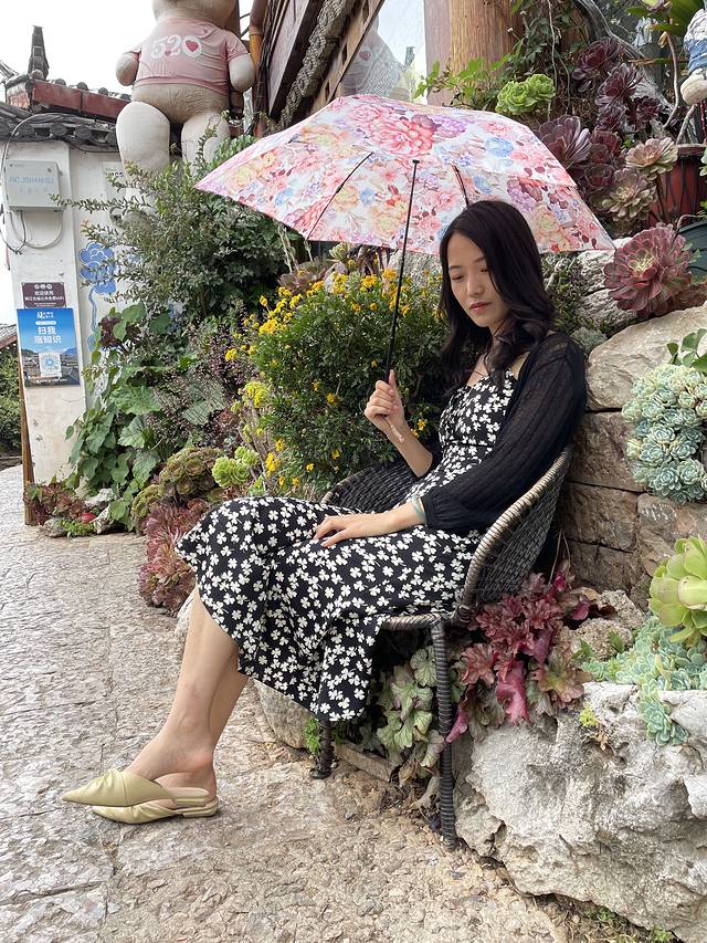 把车开到南门附近的停车场,从南门进入,白天的人流没有晚上大,更清幽。穿着小裙子,打着花伞,慢悠悠的在古城小巷里兜圈圈。