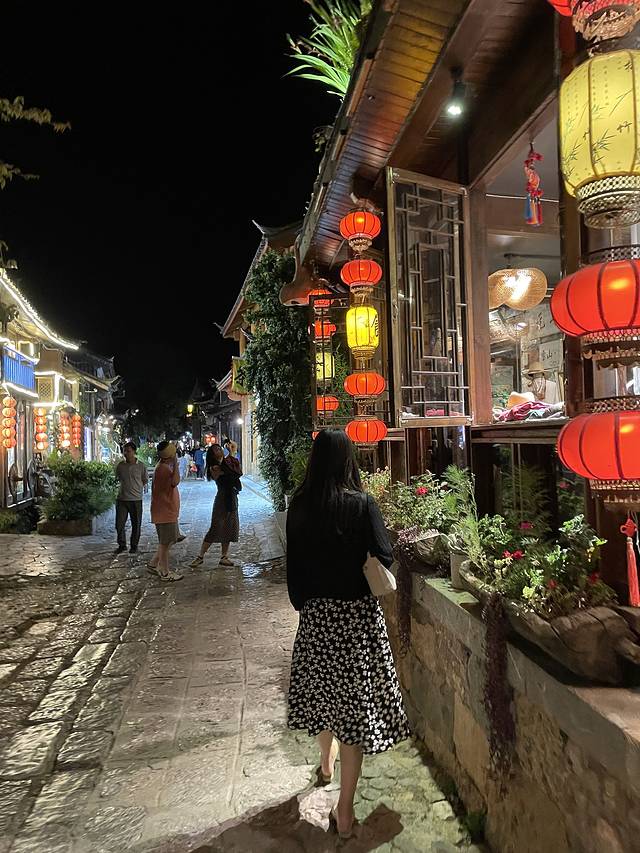 沿着街道进入古城,繁花正茂的巷口,游人攒动,给古镇增添了热闹,顺着水流边的石板路走,拍拍照,给爱人介绍下这里的人文风土、美食美景。夏天的古城,游人太多,主干道每走一步都是被人流推着向前。我们就找小巷走,这样可以清净些许,还能拍到好看的照片。傍晚的古城,灯光下的小巷,每座独特的古宅,感受木质结构的建筑美学。