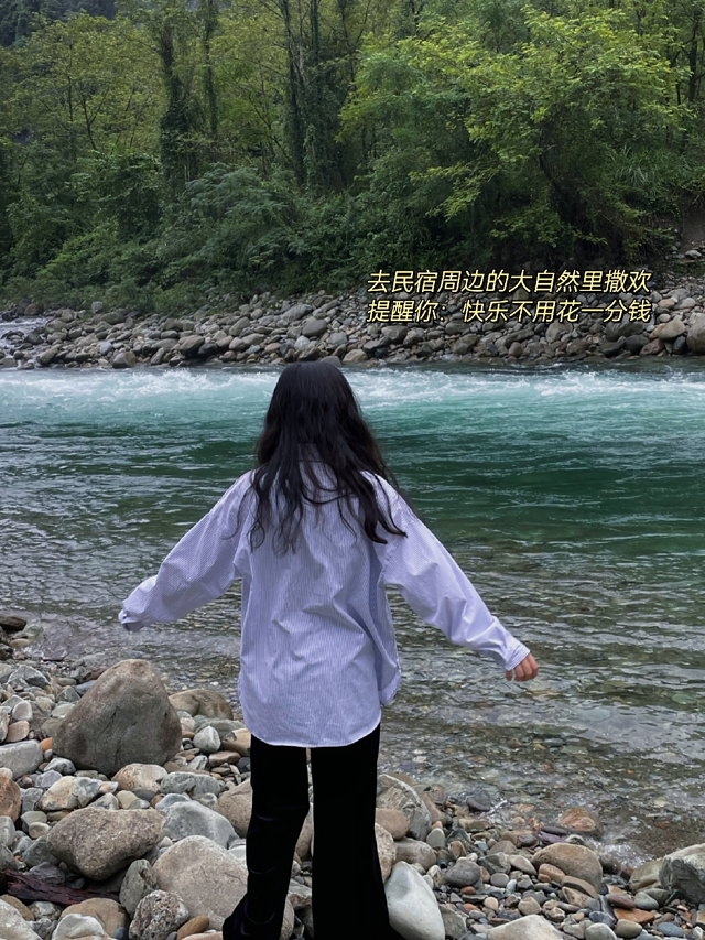 民宿周围的自然秘境,水清到让你忍不住想要捧起来喝,河边的树木、石头、阳光,让你开心地哼起小曲来。