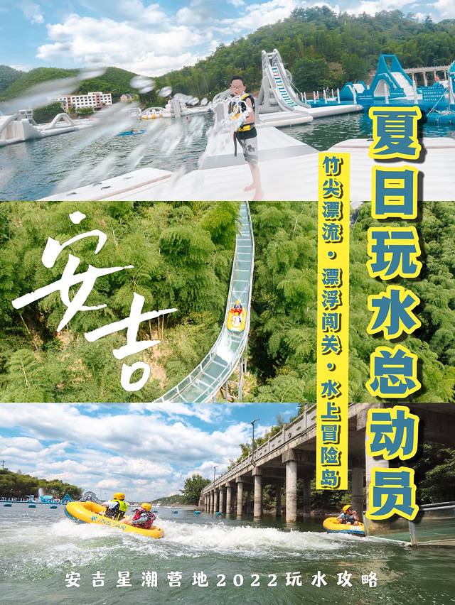 山上竹尖漂流、水上城堡闯关、水中清凉嬉水...高中低空间落差、水陆空视野场景,360°清凉体感,再加上老少皆宜的便利性...成为颇受亲子人群青睐的重要原因。有人说,水上乐园不好玩吗?峡谷漂流不清凉吗?当你亲身体验过星潮,你一定知道——比峡谷漂流安全、时间长,比水世界乐园天然、自在;比泳池更安全、畅快。第一次来安吉玩水,不知道怎么选,我告诉你来星潮就对了。安吉不止峡谷漂流、水世界,还有安吉星潮的1次竹尖漂流+无限畅玩(水上冒险岛+漂浮闯关平台+桨板皮划艇),当然今夏前2天,国民老公王校长还专程来打卡。一站地解锁——夏日清凉带娃不二地、情侣闺蜜玩水宝藏地、浙江热门水上团建基地吧。