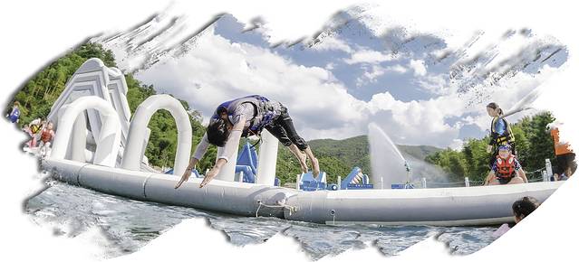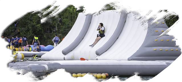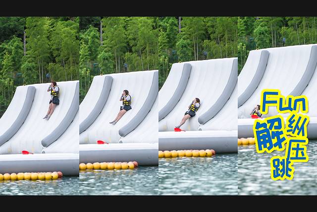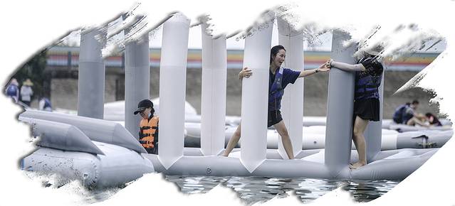大人欢笑,小孩尖叫。这就是漂浮闯关平台。当你初识星潮之时,随山路驱车深入之时,左侧清澈湖面的这一座超大水上充气城堡,蓝白相间,就已然让你抑制不住兴奋的心情了。当你置身在这座漂浮的水上城堡,四周通达,目之所及处,皆是“障碍”,但是,隐藏你内心深处一往无前的勇气,也被唤醒,解压全在于你不顾一切,向前奔跑的那一刻;更在于你明知要落水,偏要向水跳的那一瞬间。为何说,星潮是清凉解压的玩水胜地!因为,闯关就像是生活,学业闯关、事业闯关、爱情闯关、健康闯关,人生不如意十之八九,偶有成功,失败更多。每个人活得跟一个斗士一样,再没有比在星潮Fun肆闯关,来得更宣泄、解压、释怀了。