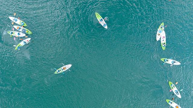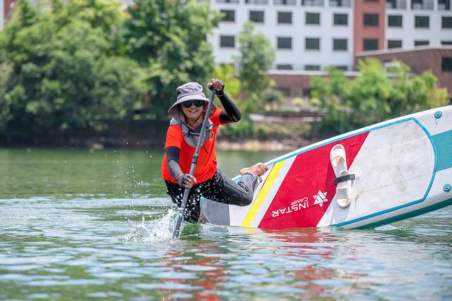 桨板,又称SUP((Stand-Up Paddling)站立划水板或滑水桨板,它集冲浪板的站板、滑板技巧,又富有全身协调挑战性的站姿划桨。起源于美国夏威夷,如今这一时尚的水上运动,在国内也风靡,相对河道、溪道、海岸桨板,狮子石水库水面相对平和,非常适合初学者,桨板体验,也极其容易上手掌握基本要领。它是单人、单叶桨、单板体验,每块板都有一块防丢绳,让你在不经意落水之时,也不必担心。
