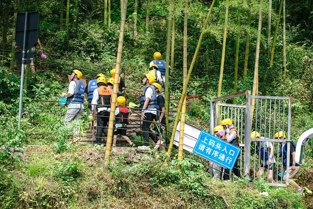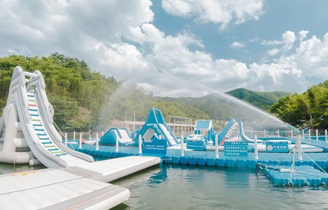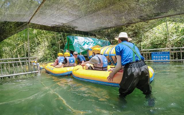 体验流程:抵达停车→换购票→寄存换装→领取救生衣、安全帽、水勺→景交车上山→竹尖漂流→漂浮闯关平台→水上冒险岛→桨板皮划艇