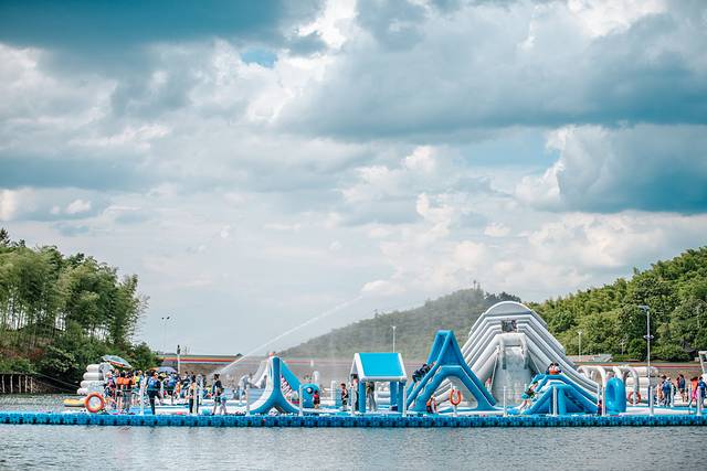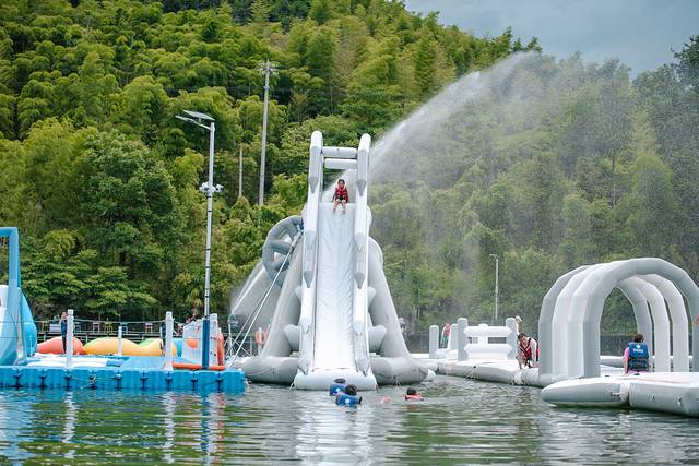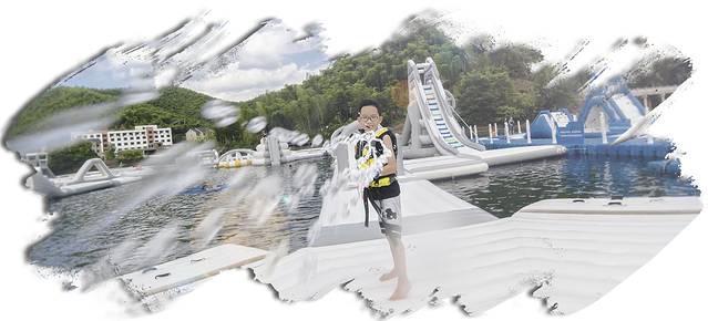 2.一票制、一站地畅快玩水:水陆空、高中低360°清凉体验,从高山顶、再到水上充气城堡,最后到绿水湖,玩水及清凉方式各不相同;尤其以玩水为天性的小盆友,更是尖叫、欢笑不止。