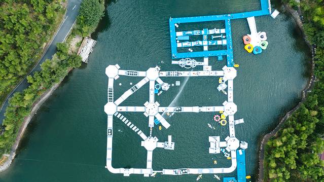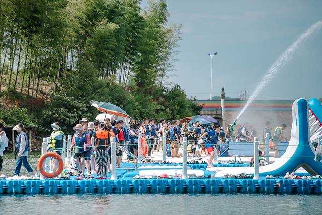 5)漂浮闯关平台pk竞技,水上冒险岛比落水姿势,桨板比踩水上板时间,皮划艇竞技比速度,注意跳水区域是否有其他人员;