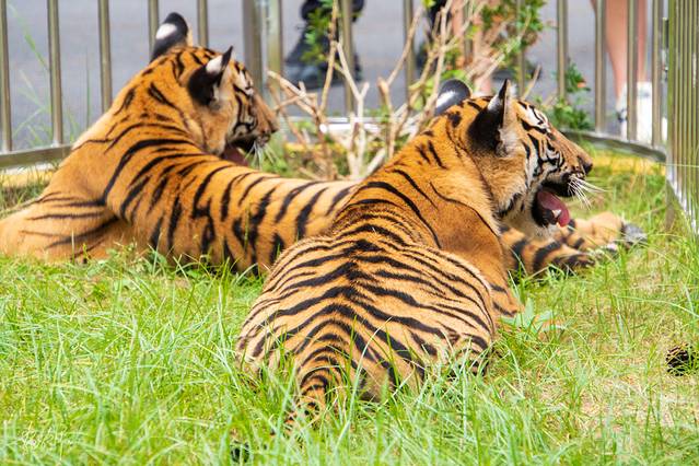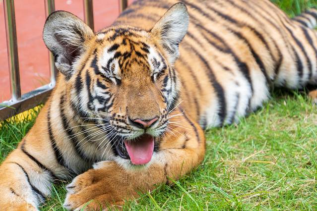 我们从韶阳楼下来,就直奔华南虎园。我还是第一次这么近距离地观看小老虎,真的是超可爱,它们喜欢颜色鲜艳着装的人们,有个小孩在围栏外嬉戏跑跳,小老虎也会随着那孩子的步伐自由奔跑。