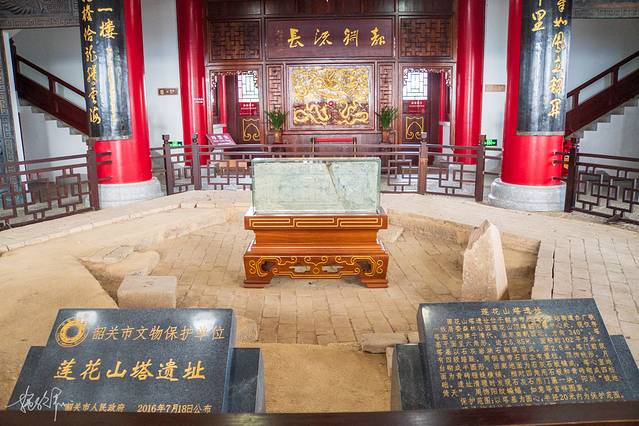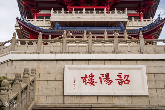 韶阳楼采用唐宋中国古典建筑风格,有五层楼,42.8米高,整个建筑宏伟壮观。进入韶阳楼,留有旧时的六角古塔基遗址,此塔基遗址是原地原状保护的状态,始建于清代,看来韶关的古人也喜欢登高望远。