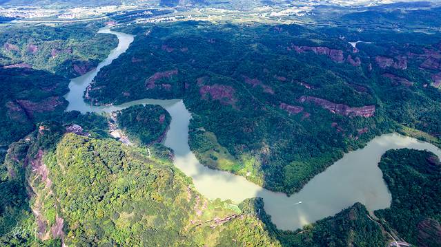 韶关仁化县的丹霞山,是我们在韶关之旅的重中之重。丹霞原本是个大型内陆盆地,受喜马拉雅造山运动的影响,四周隆起,大量碎屑沉积在漫长的岁月里间歇上升以后,成了现在的一大片红色山群。