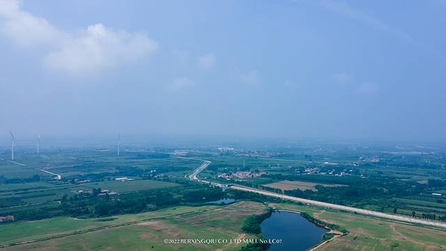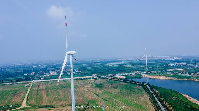 航空视角看,这个牧场的面积真的非常大,大片草地和林木,还有巨大的白色风车,风景一绝。