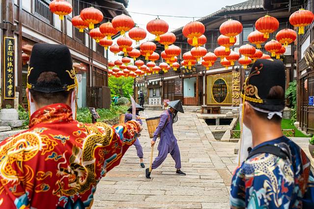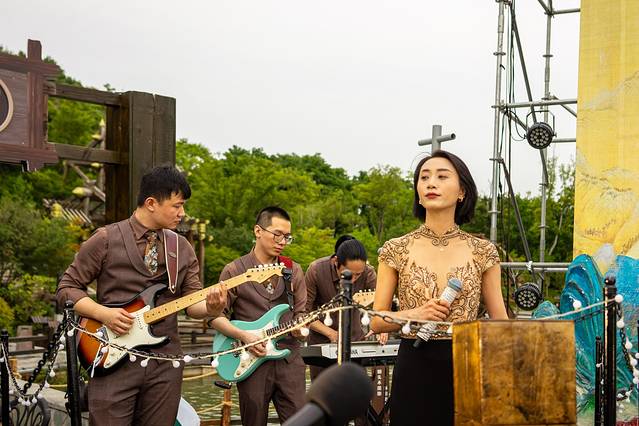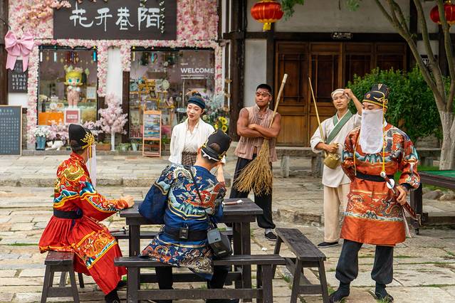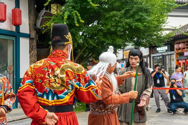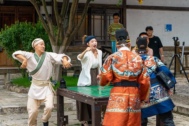 从喜泉阁开始,演员们扮演武侠剧中的角色