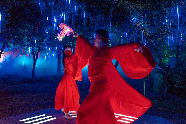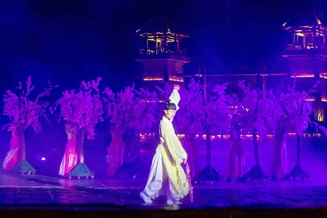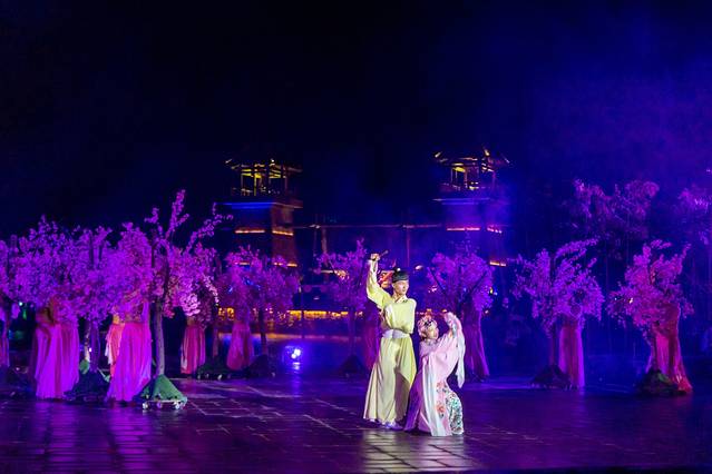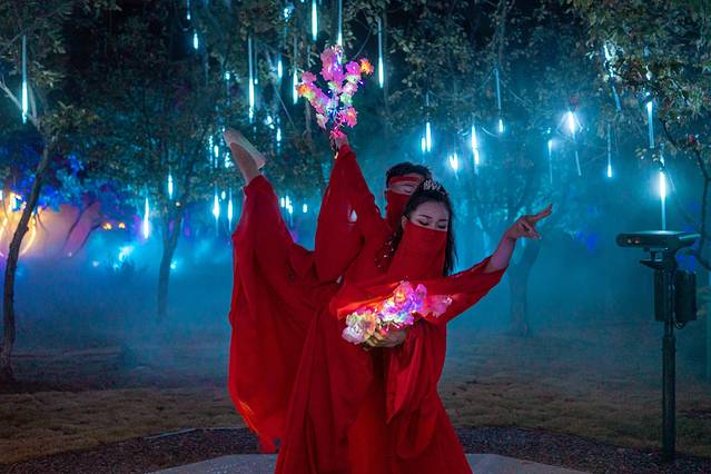 东方盐湖城推出了沉浸式江湖光影秀《梨花幻境》
