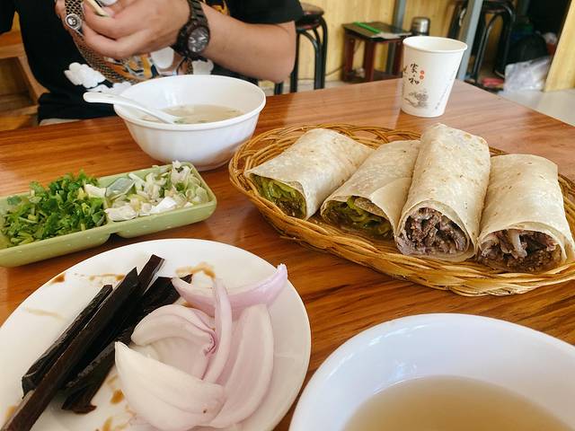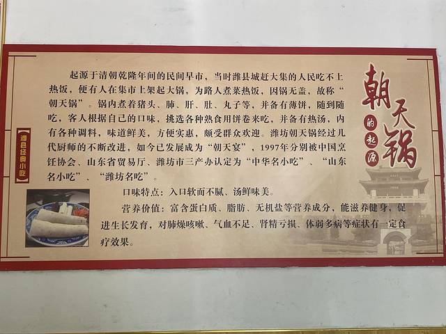 午饭纠结了半天,想着来潍坊总要试试朝天锅吧。之前一直以为这是干锅一类的菜,去了一看,哦…是卷饼呀。