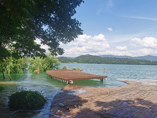 环湖公路沿着东江湖畔修建,每隔一段还辟有观景平台,并为车队预留了停车位,可以说是专门为自驾观光而修建的。虽然大中午的太阳有些毒,但如果做好防晒,并不会感觉到不舒服,因为湖面吹过来的风是清凉的。