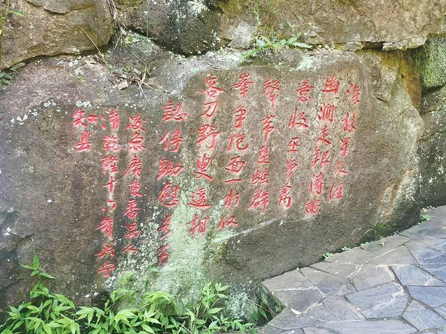 据统计,这些瀑布共有十八级,每一级都取了一个好听的名字,让它们不再是无名之辈。历代有不少文人墨客到访此地,留下大量赞美诗文,它们被摘录下来,并刻制于路边的石壁上,现在读来依然十分应景,更增添了这里的人文气息。