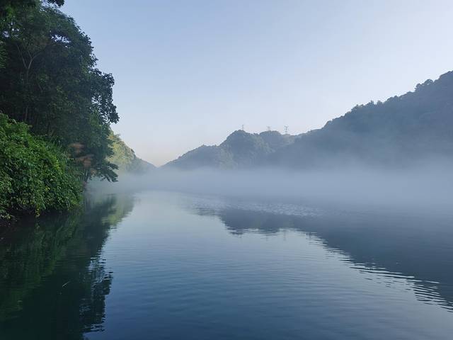 虽然无法直接看到雾,但早上的河景还是不错的。酒店距离景区还是有段距离的,需要开车前往。雾漫小东江的时间在5:30到9:00之间,最好早点起来,欣赏完之后,回来还能吃个早餐,然后再休息。