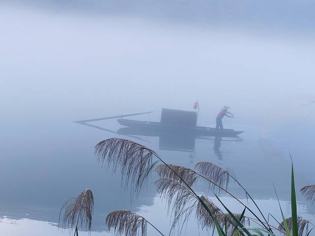 雾这种自然现象,上学时老师告诉我们,是因为空气中的水蒸气遇到颗粒物后凝结而成,北方的冬天比较容易形成。小东江的雾似乎没有遵循这个自然规律,它形成的季节是在夏季,到了冬天反而少见。