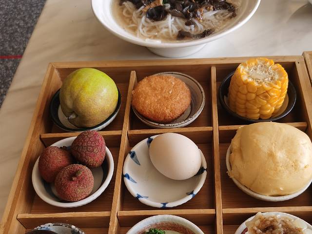 这个民宿是由一栋别墅改建的,房屋不大,没有电梯。开始给了一间一楼背河一侧的房间,进入后感觉压抑而且有味道,完全不像是来度假的。经过与前台沟通,升级到面向小东江的房间,这才符合它的定位,不然就失去了住在这里的意义,所以在选择房间时一定要留意。