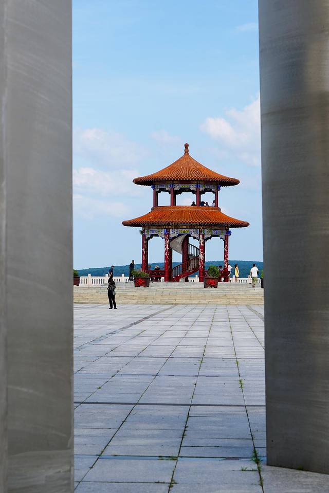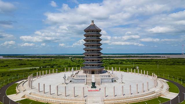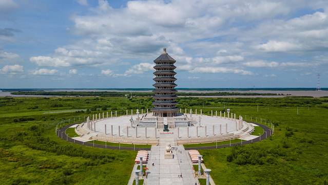 位于黑瞎子岛东部极角,临近国境线位置,造型为仿汉唐风格,九层八角形楼阁式塔身,通高81米。