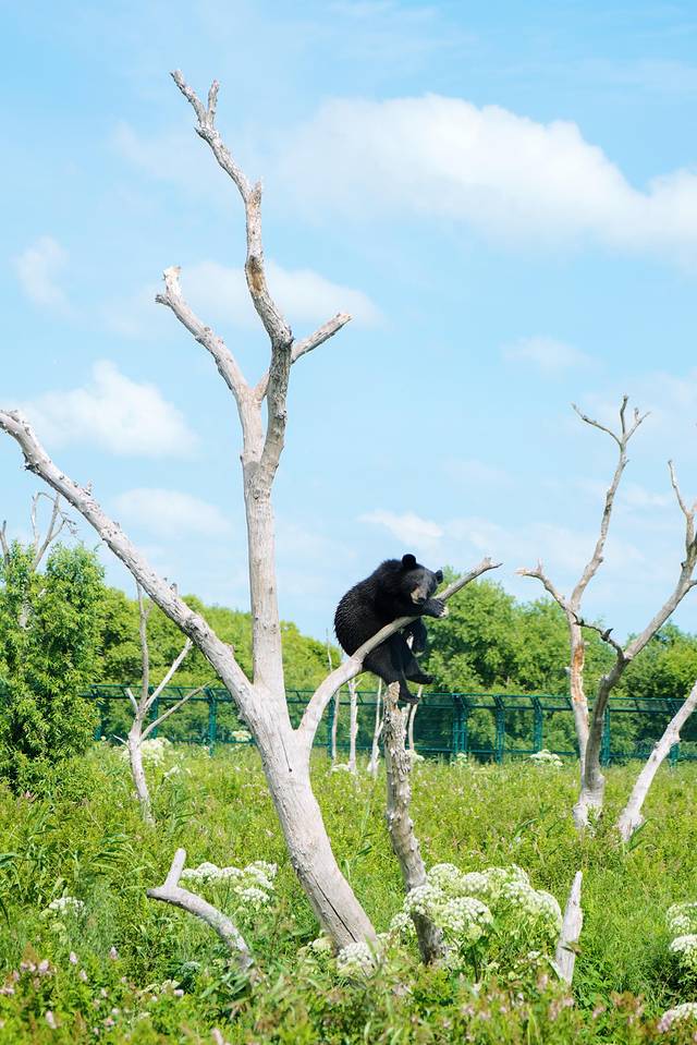 乘坐景区专用车,沿蜿蜓起伏的游览路线进入湿地丛林,随处都能看到萌态可掬的黑熊,有的在小道上悠闲漫步,有的挂在树上惬意享受日光浴…可爱至极。