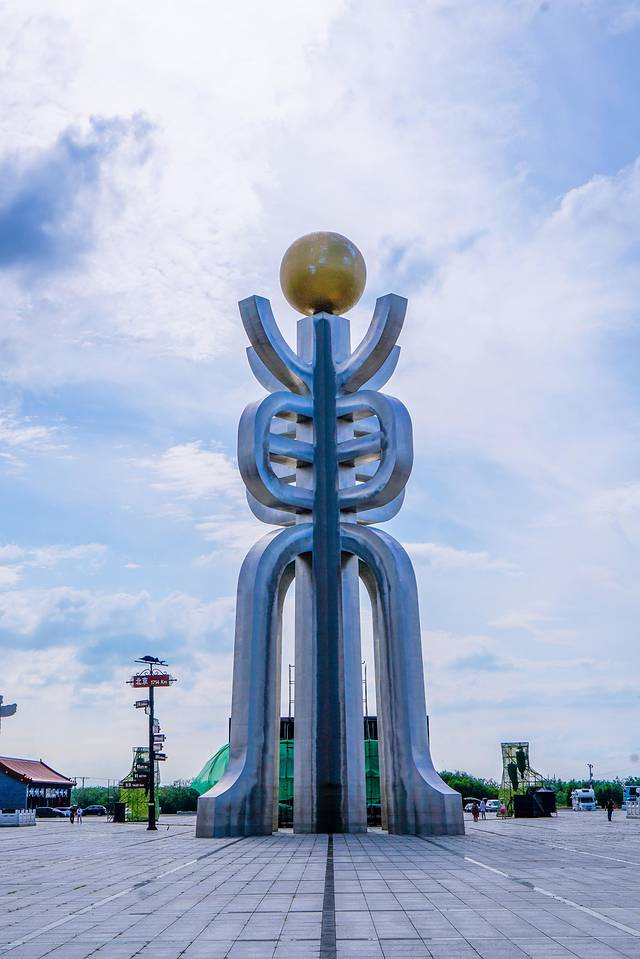 广场中央,矗立着一座高达四十米篆字“東”标地标,造型宏伟,气势非凡。