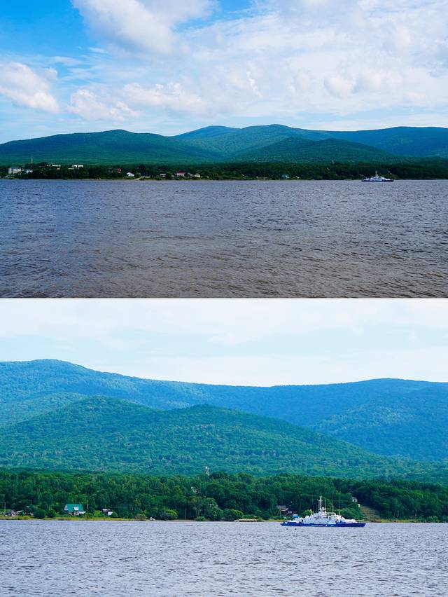 漫步至江边,对岸就是异域风情十足的俄罗斯小镇,游客还可以在游船码头乘坐游艇,饱览东极边境线壮阔景致。