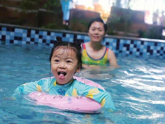 ★温泉区一层为室内水上乐园和中草药养生汤池、大型冲浪池、演艺舞台、沙滩休息区、特色美食屋等。