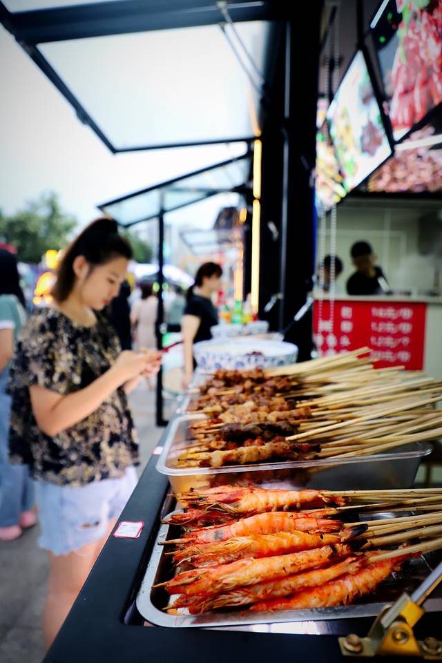 烤肠、披萨、街头酒吧、烧烤、各种饮品,