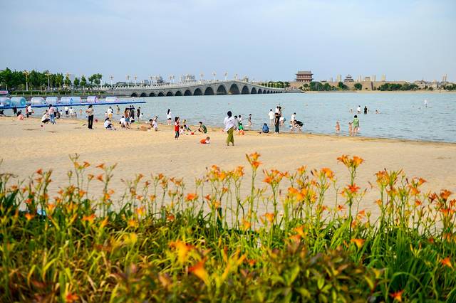 东昌湖原名环城湖,总面积4.2平方公里,略小于杭州西湖,是济南大明湖的5倍,为中国北方城市中少见的人工湖泊。湖边上的沙滩浴场、水上乐园是夏日消暑首选。我闺女2岁8个月了,在这玩嗨了,带着游泳圈可以自己在水里玩耍。