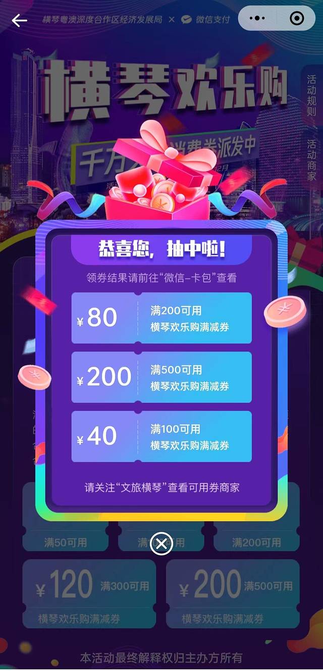 2、领消费券:如果是珠海、中山、澳门等地的朋友,记得关注“文旅横琴”并抢最高800元/周的消费券,订房、订票、购物、餐饮消费都可以用,满500减200,真的很划算!