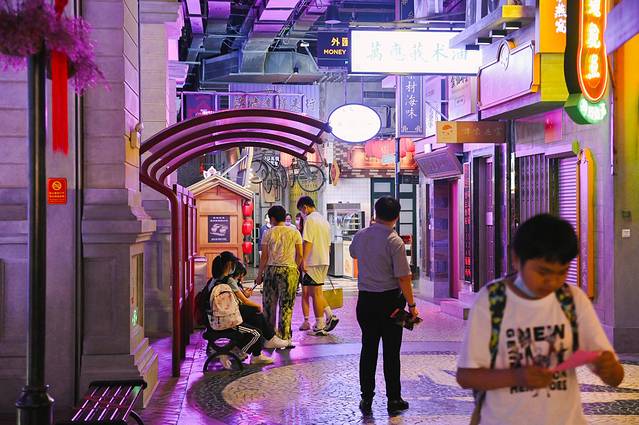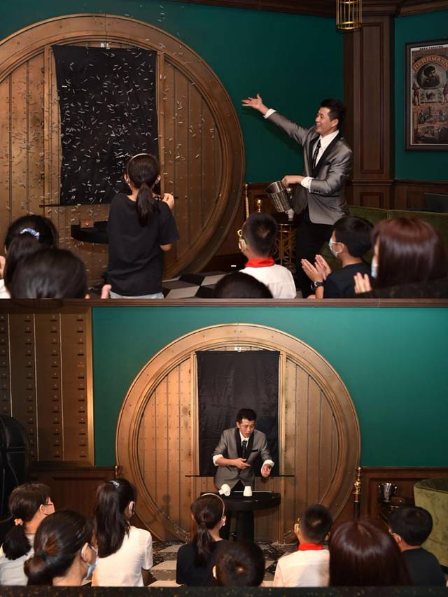 澳门夜色街,一定要来三楼这个充满年代感的拍照打卡点!出片率真的是太高了。随手一拍就是大片。复古风,摩登风,朋克风的撞击,绝绝子!最喜老旧的霓虹灯牌,还有复古茶楼,甚至还可以占卜一卦。这里还是1:1复刻《惊天魔盗团2》电影里的澳门街景,对于去过澳门的我来说,真得比真实的澳门还有感觉!【天眼魔界】会有魔术表演,近距离看魔术师变出神奇,还是蛮刺激的。