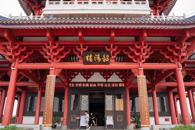 经常会去一些亭台楼阁,几乎所有的古楼阁的作用都只是登高望远,而如今的韶阳楼并不是如此。韶阳楼总共有五层,每一个楼层都会有一个文化主题的展览,分别是“韶渊流长”、“闻韶鸣凤”、“禅钟悠扬”、“风度千秋”、“莲峰清韵”。