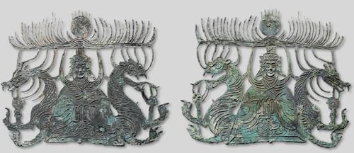 东汉 西王母纹饰 青铜神树(俗谓摇钱树)残片(网上图片)