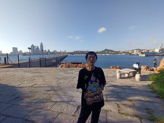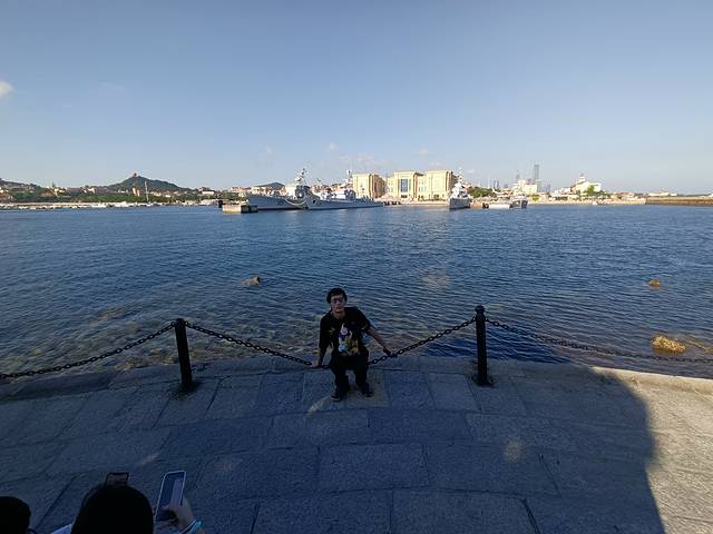 小青岛矗立在海中,与海相伴,与陆地相连,一条纽带联通海峡,永不分离。此地是观赏日落的最佳之地。夕阳西下,淡红色光线映照海面,彩霞斑斓,倒影斜射,微光鳞鳞,一半海水一半清凉。远方的栈桥披上金色光芒,近处的海军博物馆落日余辉所吞没,军舰光芒点点,叙述什么。坐在海边的长条椅上,背靠琴屿之剑,小灯塔,余光微弱,海浪柔柔,清风凉凉,大海茫茫,无边无际,似是清晰似是浑浊,海水迫击礁石,海纳百川,有容乃大,包容之心,人之胸怀。环岛凉爽有之——做在背面礁石上,闷热有之——做在朝阳条椅上,眼观大海宽广,各有千秋。