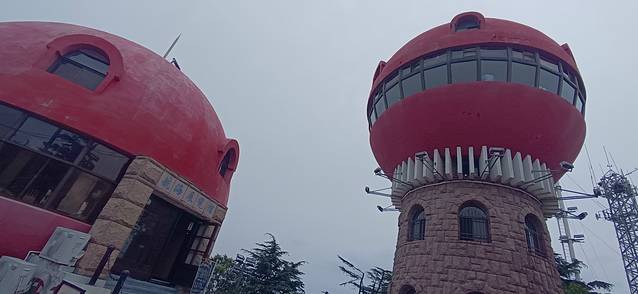今天天气异常凉快,爬山是最好的,好象下雨。信号山的美,三个规则不一红色小球可爱极了。我去过小孩去的是小鱼山,这次就补上的。扫码查核酸预约直接进入,几年前去时小球球刚刚建好在装修,不能攀登/沿山间小路缓慢上行,路很多条,风景相差点,结果一个--登顶。没想到走的路既是当初k路线,中间有个图腾,可以远观海边风景。略停留下,回想那时情形。路不断延升,徐徐清风拂面,心中热意一扫而光,犹如雪糕一般,浑身散发青春激情。来到山顶直视漂亮调皮红色发光体,急不可耐登上球体,那360度全方位落地观景平台,一览整个沿海沿山风景,什么中山公园,太平山,小鱼山,汇泉湾,栈桥风景尽在眸中,红顶绿树,碧海蓝天,太美,极美,极美。一开始发现脚下在动---不对劲,后来明白是观景旋转平台,那则更哇塞。坐在舒适观景椅上,眺望远方---东西南北 /足足一整圈才尽兴。