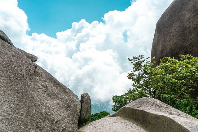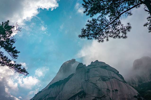乡人传说,此峰不断上长,仙家路过,摄巨石压顶,抑其长势