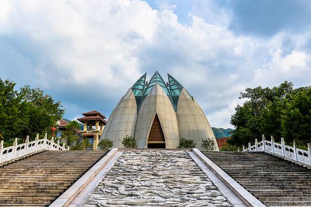 【经律论文化旅游小镇】是一家以“禅”文化为主题的文旅小镇,景区是国家AAAA级,酒店则是依五星标准修建。里面有玫瑰园、孔雀园、彩虹大道、祈福台等等,但最大的标志是自在天·翡翠观音像,最具特色的则是纯天然温泉。