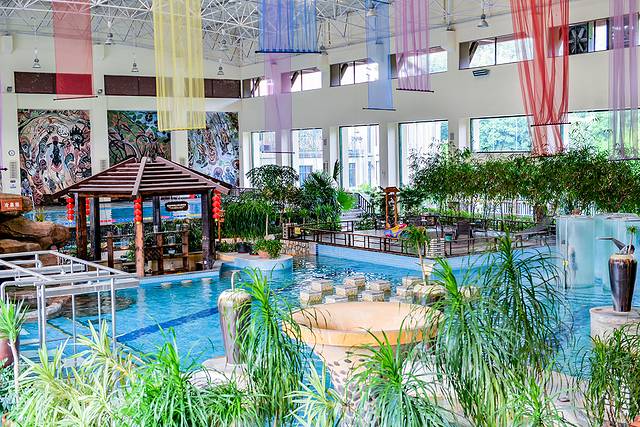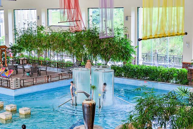经律论文化小镇的温泉是广东首批真温泉,是有众多认证加持的天然氡温泉。整个温泉区包括室内室外两大部分,大大小小加一起有温泉池60多个,室外部分环境也是一绝,峡谷幽深,林木茂盛,负氧离子充足,是个放松的绝好去处。