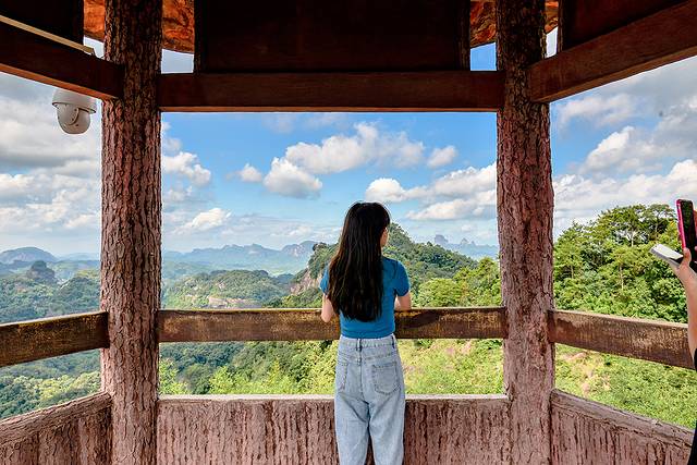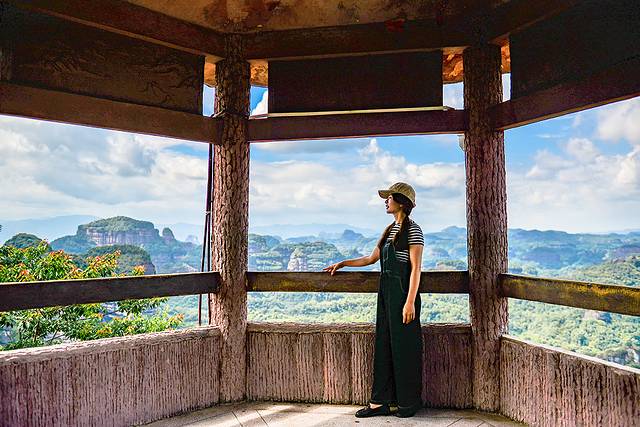 上一次到丹霞山还是2013年夏天,如果没记错的话,那时侯征服丹霞山完全靠腿,爬上爬下,没有外力可借。这次再来丹霞山,到韶音亭有缆车可乘,到阳元石观景台也都有车可坐,整个行程变得轻松了许多,带小朋友的也不用担心。还有一点就是这次再来丹霞山,发现景区的配套设施也更完善,一路上标识明确,指示更清晰明了,休息亭之类的配套也做得很好。