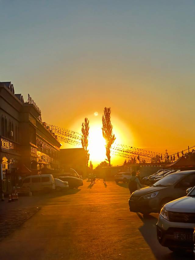 7月的新疆几乎近11点才天黑,晚上10点半的落日也很壮美,甚至出现了日月同辉之景。