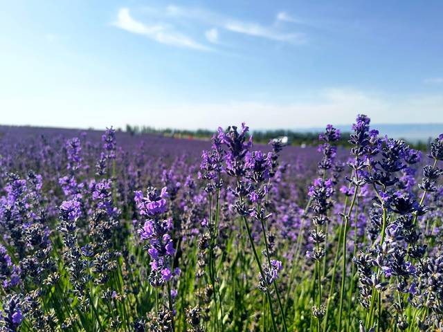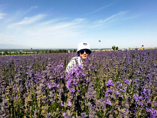 伊犁州最著名的薰衣草景区是霍城,尽管7月初已经不是第一轮薰衣草盛开最好的时候,但伊宁县天山脚下的天山花海景区刚好在我们计划的线路上,我们还是打算去看看。天山花海景区景区门票30,区间车20,学生、警察都免门票。景区并不单单只有薰衣草,还有果树、其他品种的鲜花、游乐项目,不过这个时节就薰衣草值得观赏一些。