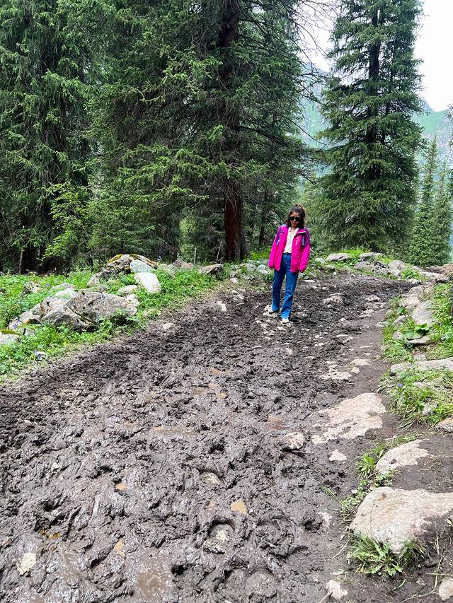 这路确实够泥泞的,所以有时候这要踩着石头过泥巴