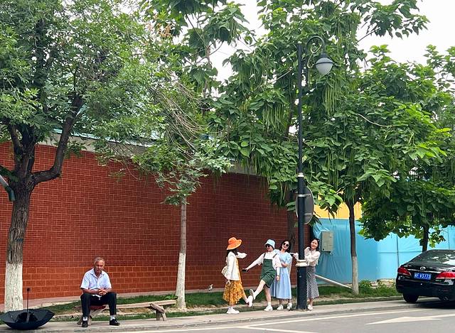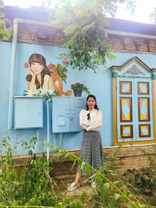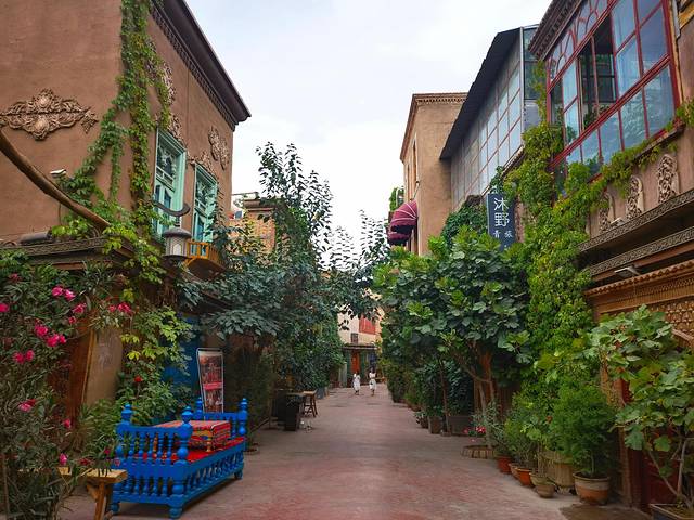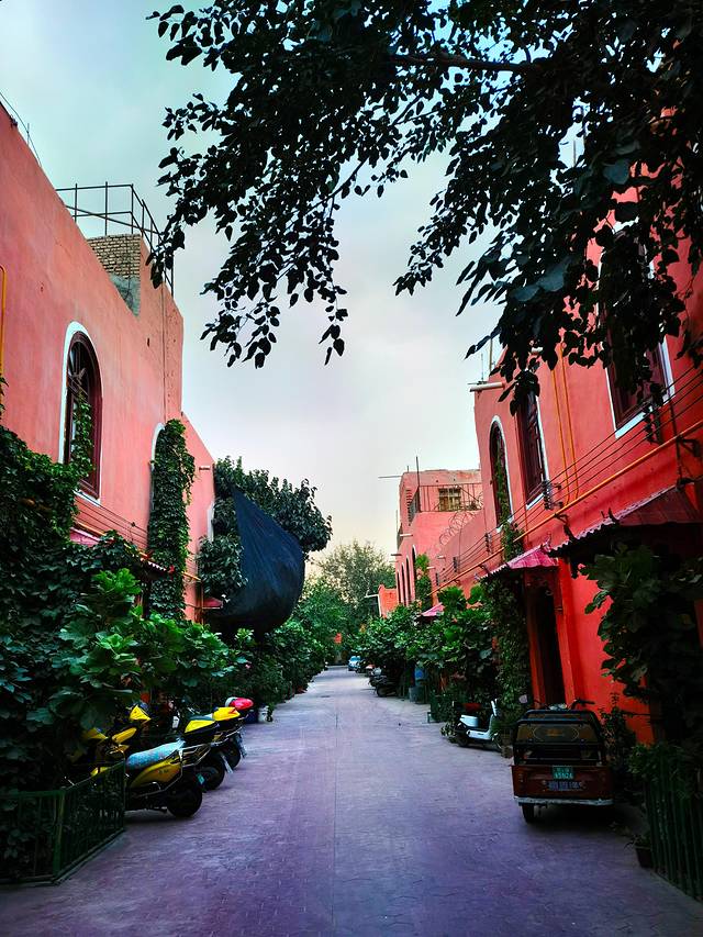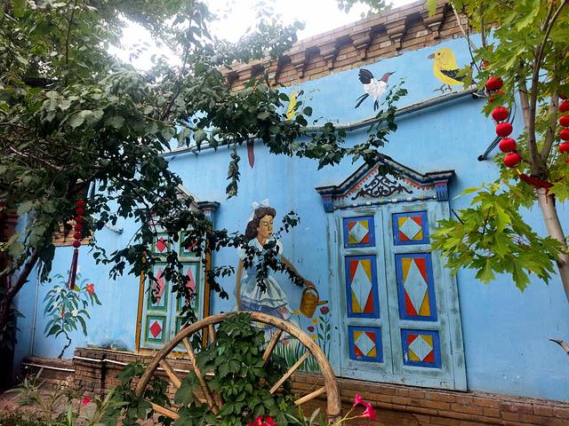 伊宁市是伊犁哈萨克自治州的首府城市,是个很有特色的城市,城市色彩浓烈,上回去的喀赞其街区,彩色房子特别多,这次换了六星街(始建于上世纪30年代中期,根据当时新疆省政府推行的六大政策(反帝、亲苏、民族平等、和平、建设、清廉)理念,由德国工程师瓦斯里规划设计。街区平面呈圆形,有六条主干道从中心向外辐射,把街区分成六个扇形地区),六星街和特克斯城的外形有点类似,不过特克斯城是根据《周易》八卦“后天图”方位设计建成,两者体现了中西文化异曲同工之妙。六星街也很美,民居都是彩色房子,路边随处可见各种各样的果树。
