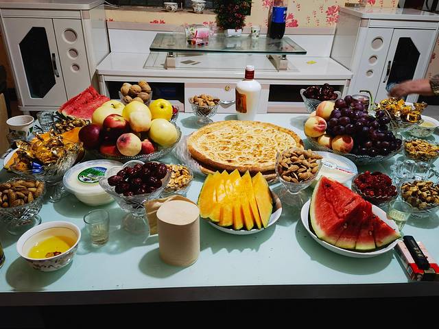 我们去的家庭是易哥的员工家里,住的小区有点类似于内地的安置小区,原谅我记不住主人大哥的名字,大哥一家都特别热情,一桌子的美食,烤完羊肉串、还能煮饺子、一个劲的劝我们吃,从他家里出来,肚子都撑饱了。