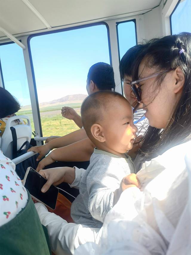 同坐区间车的小朋友,喜欢黏着漂亮阿姨呢