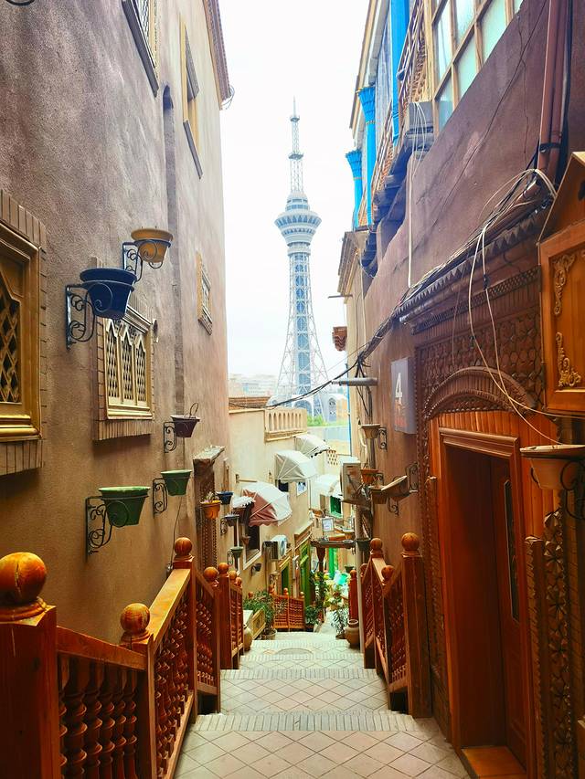 喀什古城,网红打卡点很多,像电视塔、彩虹巷、布袋巷、蓝色巷子等等,其实我们逛古城就是一顿瞎逛,看看老房子,逛下小巷子,累了就找个茶馆或者咖啡馆坐坐。