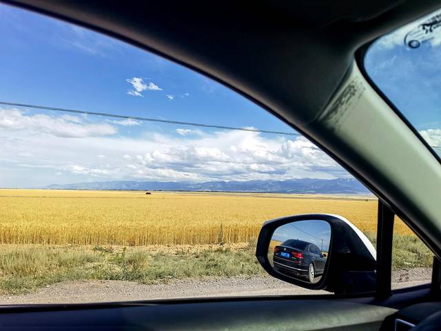 从夏塔往伊宁县全程约220公里,行程约3.5个小时。开车的时候还闹了点笑话,开过一个长长的隧道,我觉得不管怎样都看不清楚,把汽车灯开关摆弄了几遍还是觉得黑乎乎的,就问灯怎么不亮是不是坏了,坐在副驾的岚岚看了我一眼说:你戴着墨镜开隧道能看清楚就怪了。哈哈哈