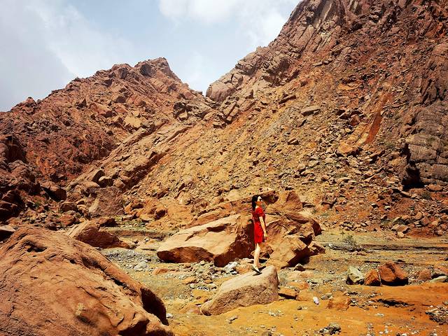 奥依塔克红山谷属于免费“野”景区,无人管理。从喀什往塔县的314国道上,经过奥依塔克冰川公园景区沿314继续前行3公里左右,会看到路边有一块1582的路牌,前行几十米的右手边有一块土坪,可以停车,往里走就是红山了,山谷两边全部是红色岩石,有的岩石上还有红色的孔洞,虽不说是很壮观的景区,路过进去游览拍几张照片还是很可以的。