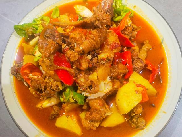 中午去的百味餐厅,大盘鸡的味道很好,鸡肉劲道但是不柴,分量十足。